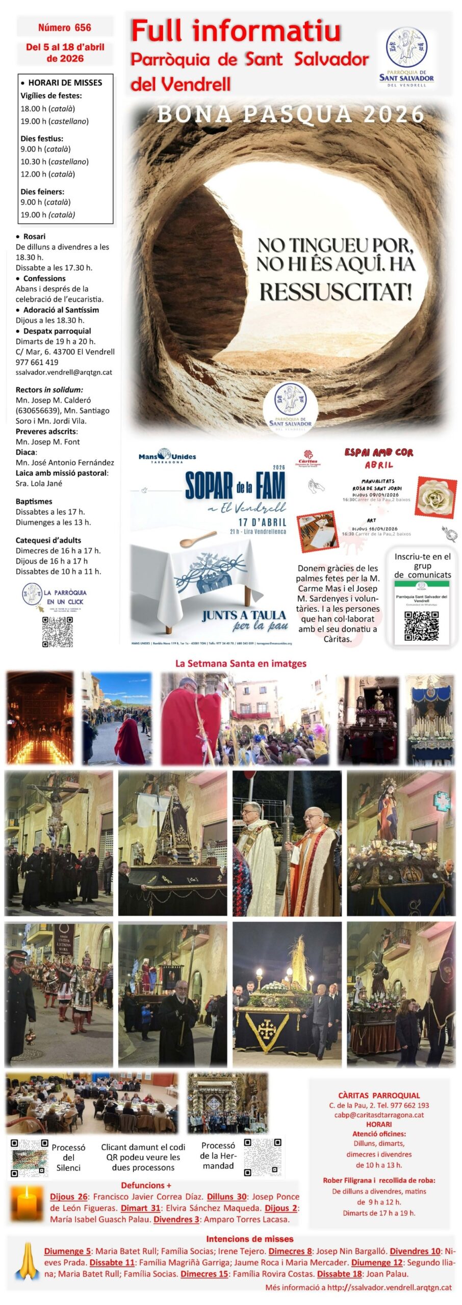 HORARIS DE LES CELEBRACIONS RELIGIOSES DE SETMANA SANTA I PASQUA